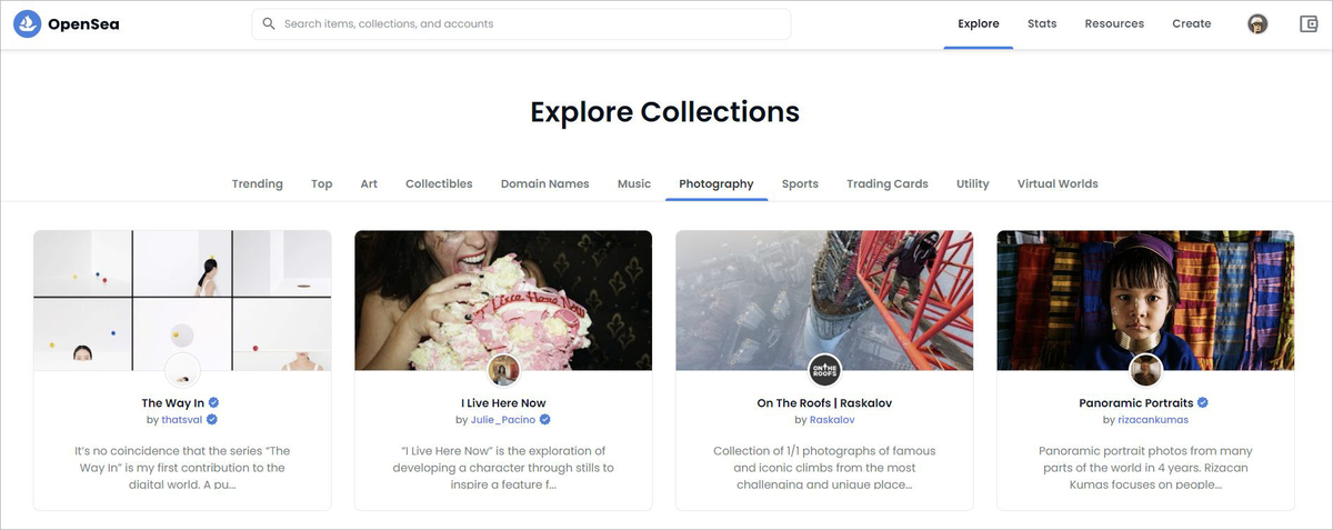 内部構造でなく、単純に世界にどんな写真系NFTが展開されているのかを見るだけでも面白い。